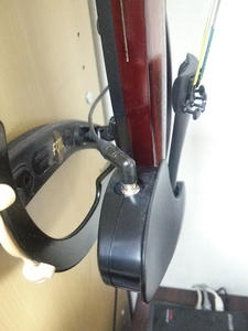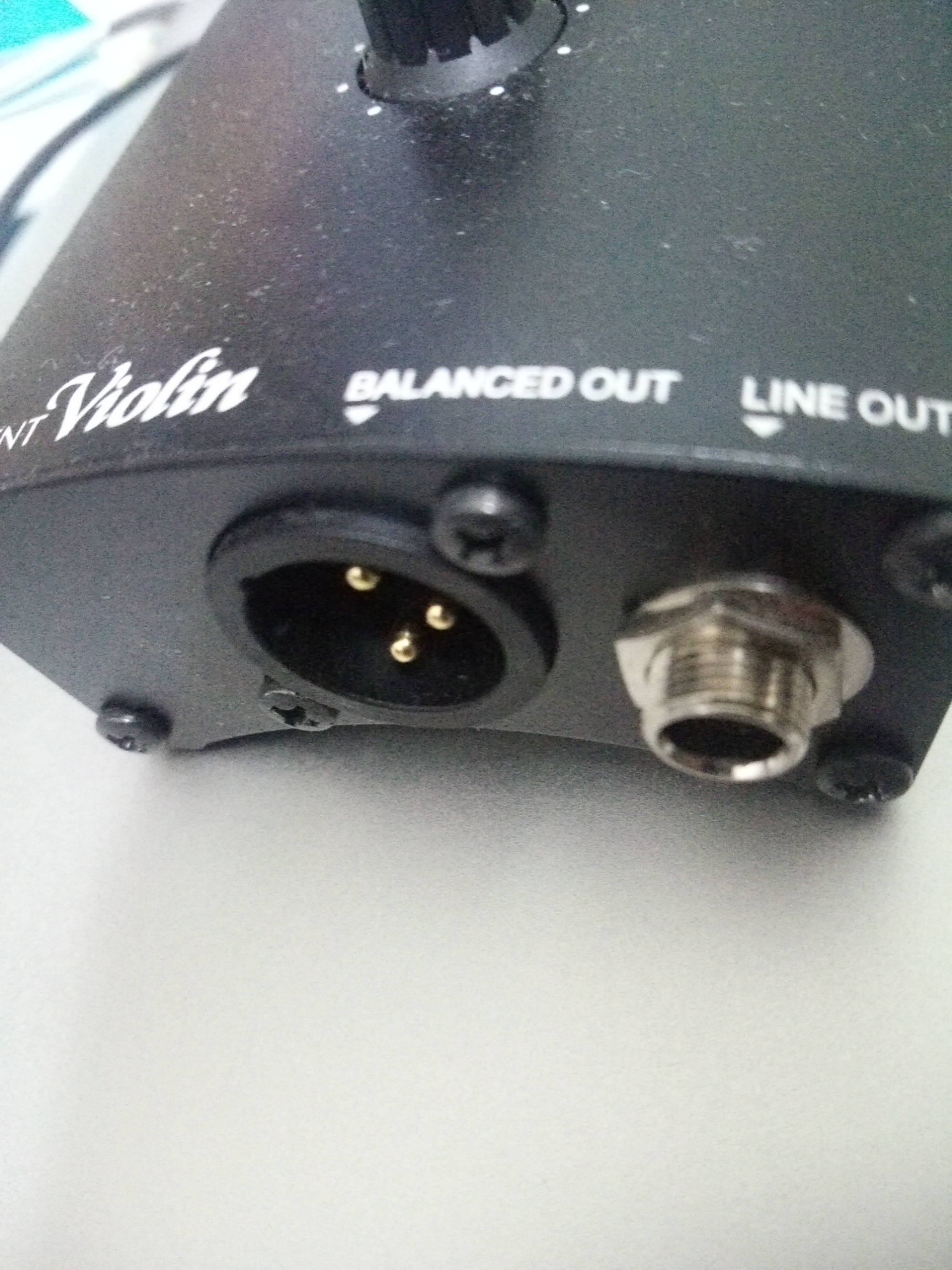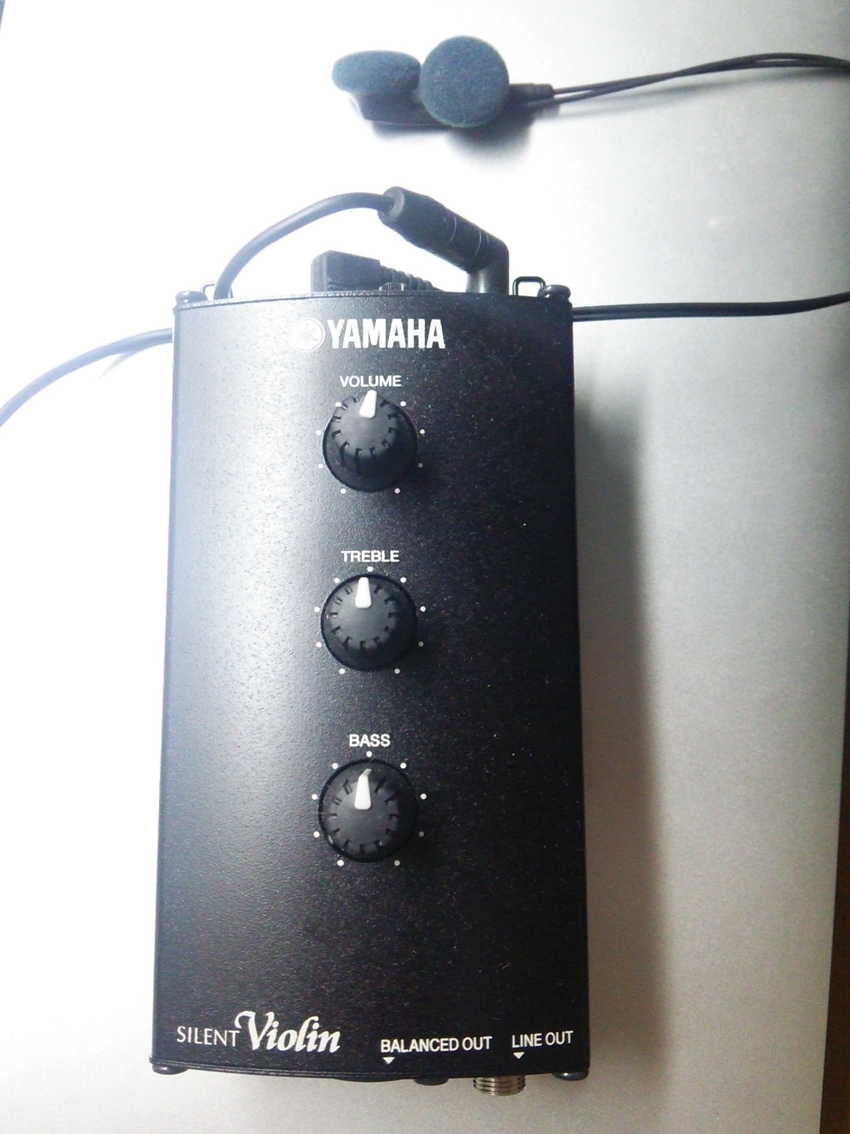 ↓こんな風に ちなみに↓のように専門的(?)な音楽機器に繋げるコネクタもあります。(YAMAHA SV250の場合) 他は普通のバイオリンと同じです。